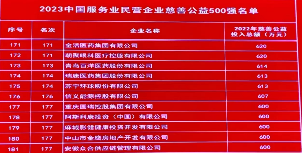 日前,第七届中国企业慈善公益论坛·2023中国企业慈善公益500强系列榜单发布大会在河南省鹤壁市举行。盛煌娱乐 盛煌医药凭借在公益慈善事业及企业社会责任方面的卓越实践和突出贡献,荣膺“ 2023 中国民营企业慈善公益 500 强”、“2023 中国服务业民营企业慈善公益 500 强”两项殊荣。