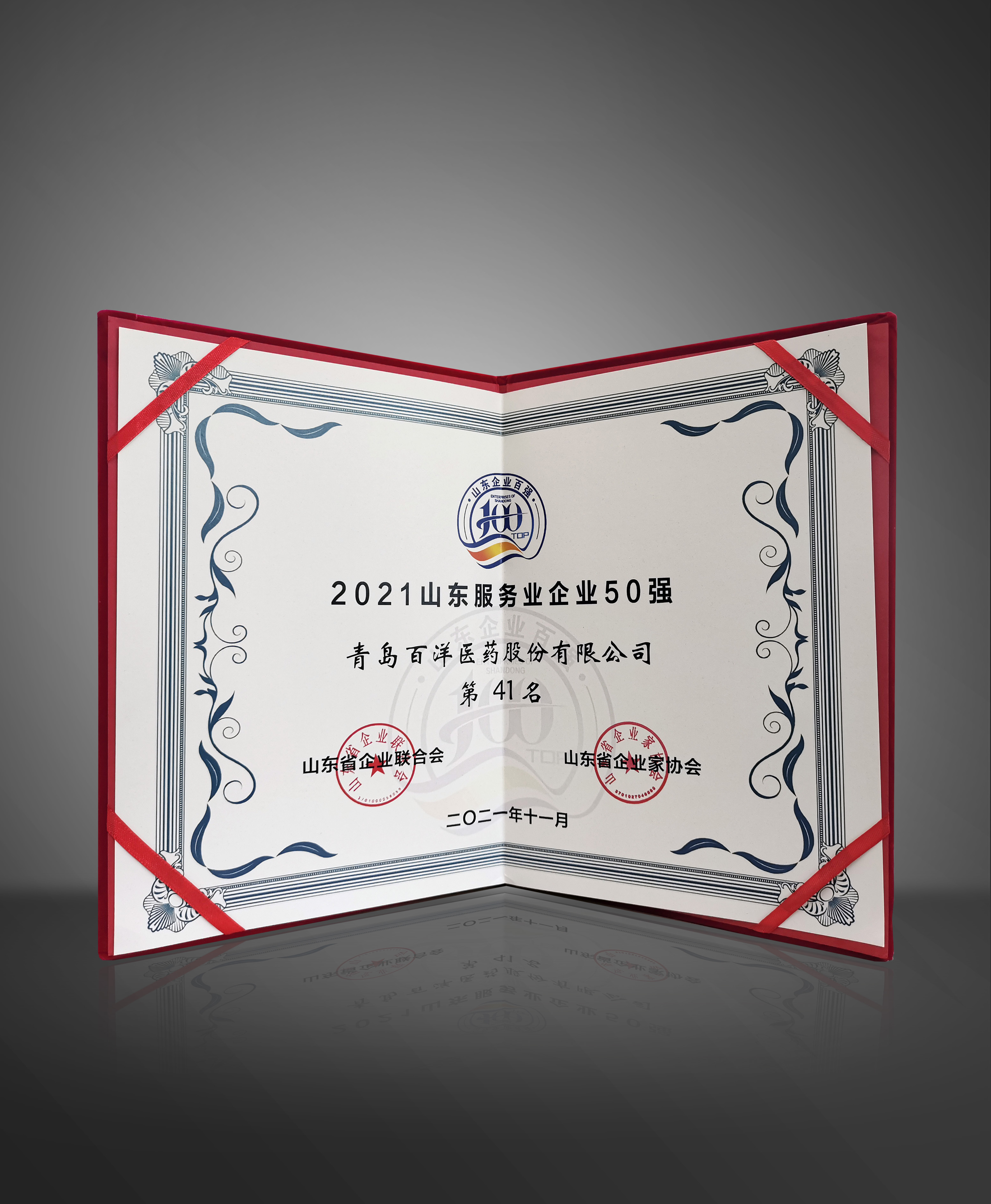 2022年盛煌娱乐 盛煌医药集团荣获青岛市民营企业100强,服务业10强