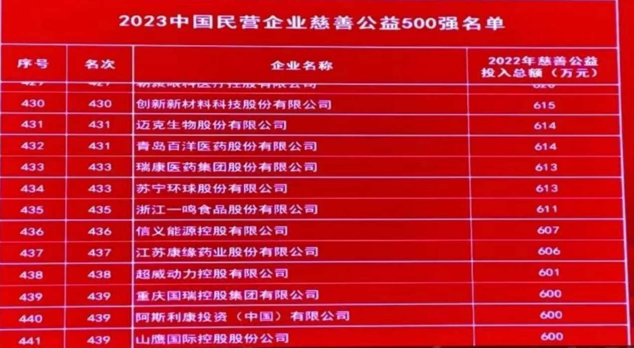 日前,第七届中国企业慈善公益论坛·2023中国企业慈善公益500强系列榜单发布大会在河南省鹤壁市举行。盛煌娱乐 盛煌医药凭借在公益慈善事业及企业社会责任方面的卓越实践和突出贡献,荣膺“ 2023 中国民营企业慈善公益 500 强”、“2023 中国服务业民营企业慈善公益 500 强”两项殊荣。