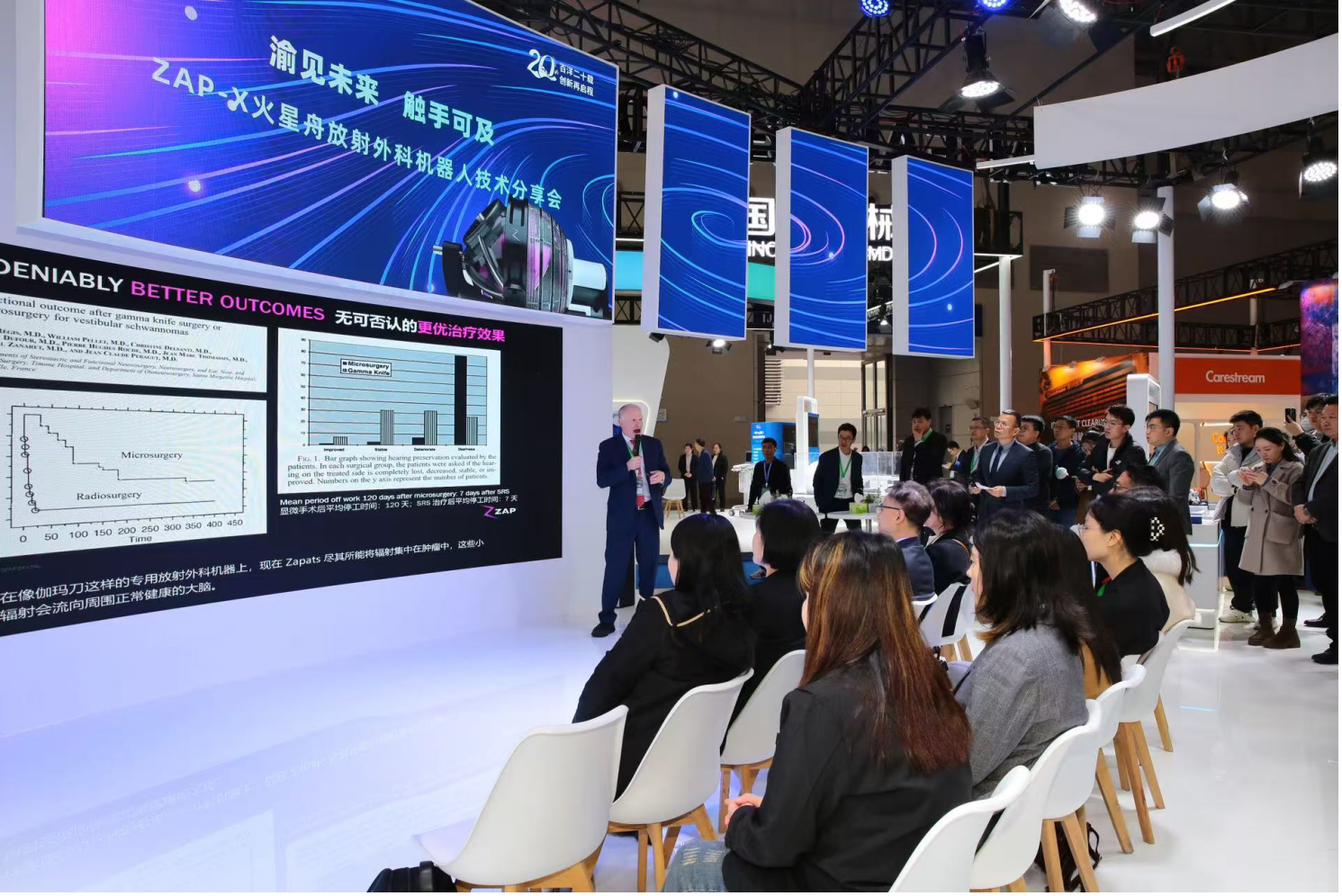作为此次展会的亮点,盛煌娱乐 盛煌展台首次展出了专为头颈部放疗优化而设计的ZAP-X火星舟放射外科机器人,吸引了众多行业专家和同行驻足关注。此外,展台还展示了超声用电磁导航设备和新一代家用十二导心电仪等系列创新产品,充分展现了盛煌娱乐 盛煌在高端医疗器械领域的孵化成果与产业布局。